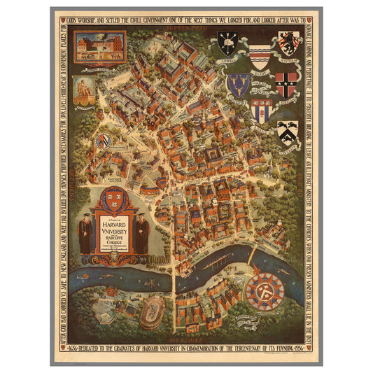 Antique Harvard University & Radcliffe College Map Puzzle - Collegiate History