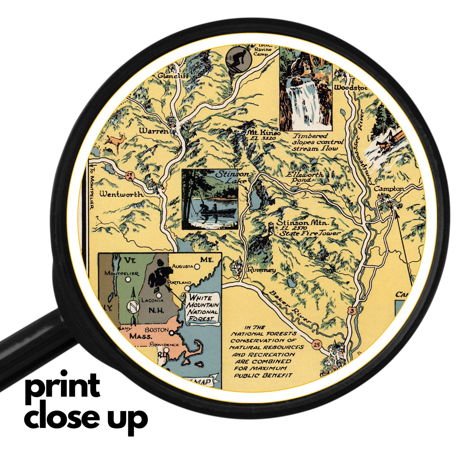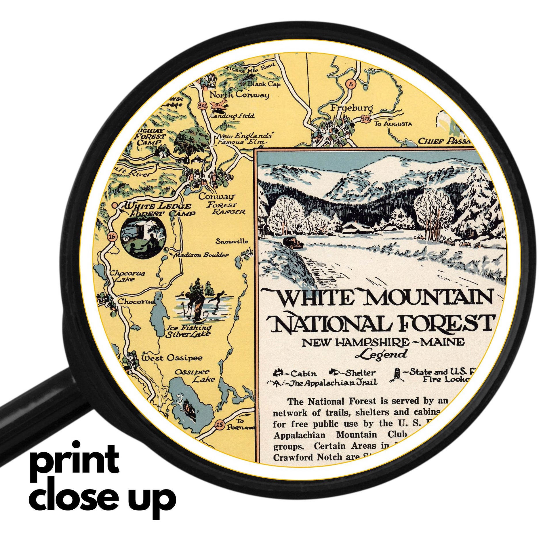 This is a beautiful pictorial map of the White Mountain National Forest region in New Hampshire and a bit of Maine!