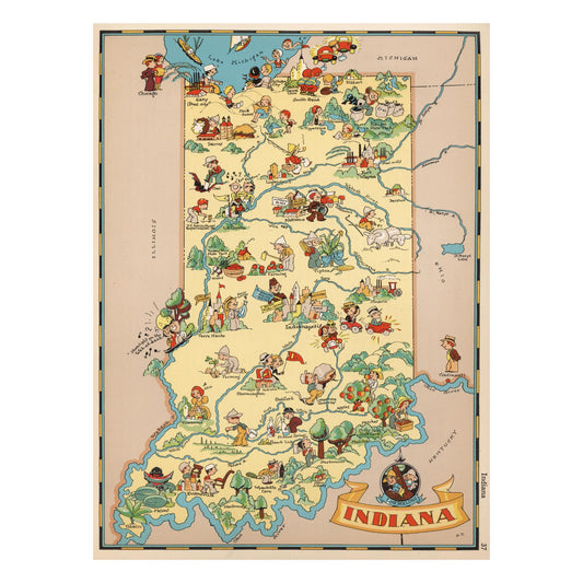 Indiana Wooden Puzzle – Vintage Pictorial Map | Unique Adult Jigsaw Puzzle