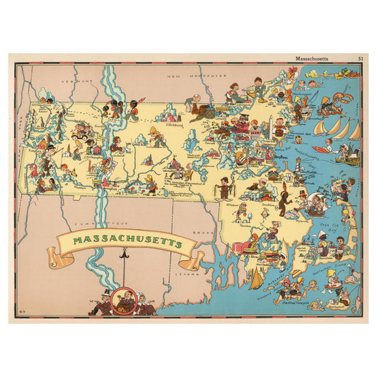 Massachusetts Wooden Puzzle – Vintage Pictorial Map | Unique Adult Jigsaw Puzzle