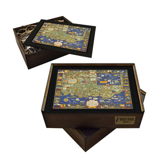 KANSAS State Wooden Puzzle | Vintage KS Pictorial Map | Adult Jigsaw Puzzles