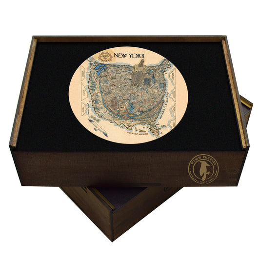 New York Wooden Puzzle – Vintage Pictorial Map | Unique Adult Jigsaw Puzzle