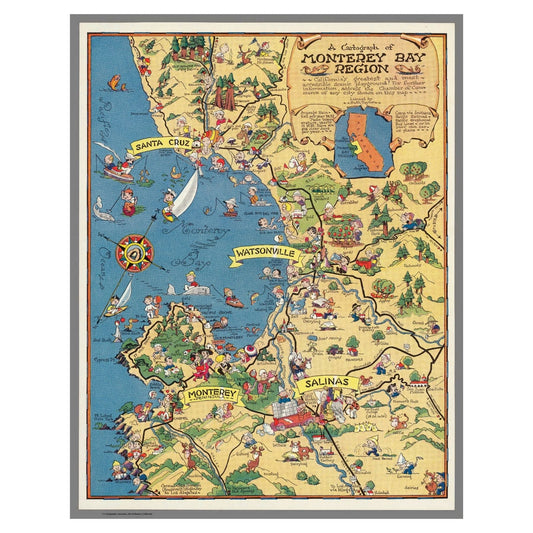 Monterey Bay Wooden Jigsaw Puzzle – Vintage California Pictorial Map