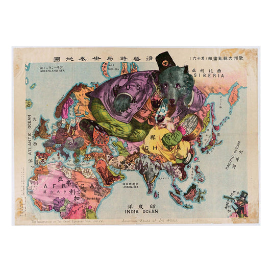 Rare Japanese World Map - Antique Political Caricature Poster | Wooden Puzzle