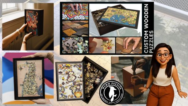 - Hand-Finished Details: Each puzzle board, each wooden box are all carefully hand-stained, painted, and glued.