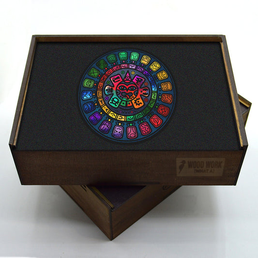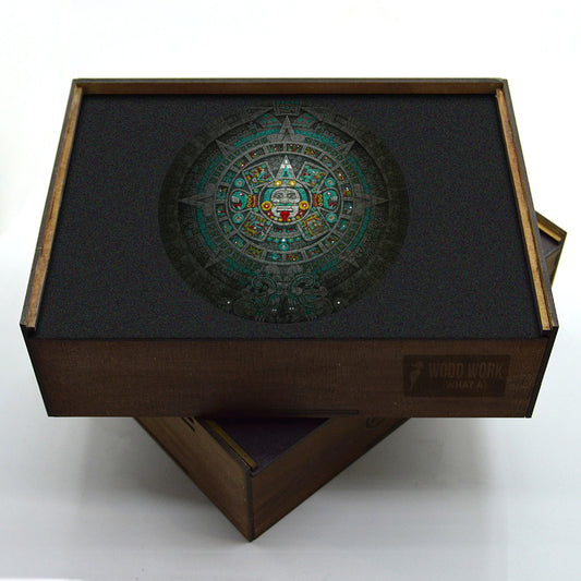 Aztec Calendar Round Wooden Puzzle – 23" 550 Pieces | Premium Adult Jigsaw Puzzle