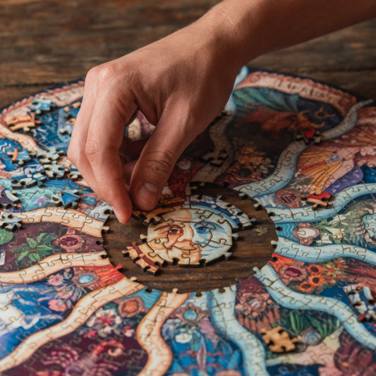 Round AZTEC Wooden Puzzle | 31 inches 1000 pcs | Adult Jigsaw Puzzles